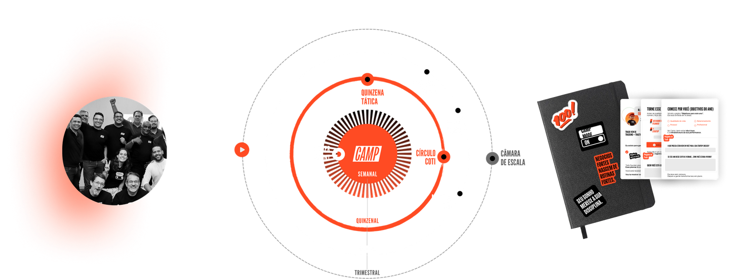 Na verdade, empresas com sócios ou times estruturados costumam extrair ainda mais valor do CAMP, porque conseguem aplicar os rituais e sistemas dentro da organização.