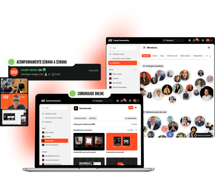 Além da comunidade de founders, o CAMP possui estrutura de suporte e acompanhamento estratégico, garantindo que decisões realmente se transformem em execução.
